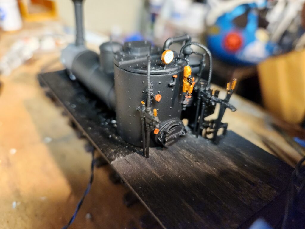 Scratch building the sand dome was also an example of something I need to remind myself over and over. When I am trying to build something, it doesn’t matter what it looks like unpainted. If the shape is correct and everything is sanded smooth, no one will know it isn’t a perfect fancy brass part. The dome looked very rudimentary at first, but was perfect with a coat of black paint.