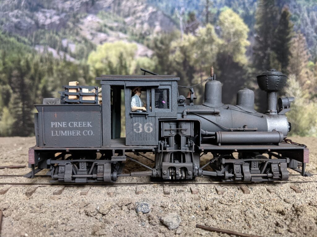 Before I started focusing on On3 finescale modeling with my freelanced Pine Creek Lumber Company, my modeling was being done to showcase on a local On30 modular layout. I really enjoy modifying Bachmann’s On30 two truck shay locomotives into unique pieces that fit my whimsy. And because logging railroads seemed too often do the same with the locomotives they’d buy new from Lima or second hand from a competitor’s operation, my creative choices (within reason) could be dropped in the woods almost anywhere.