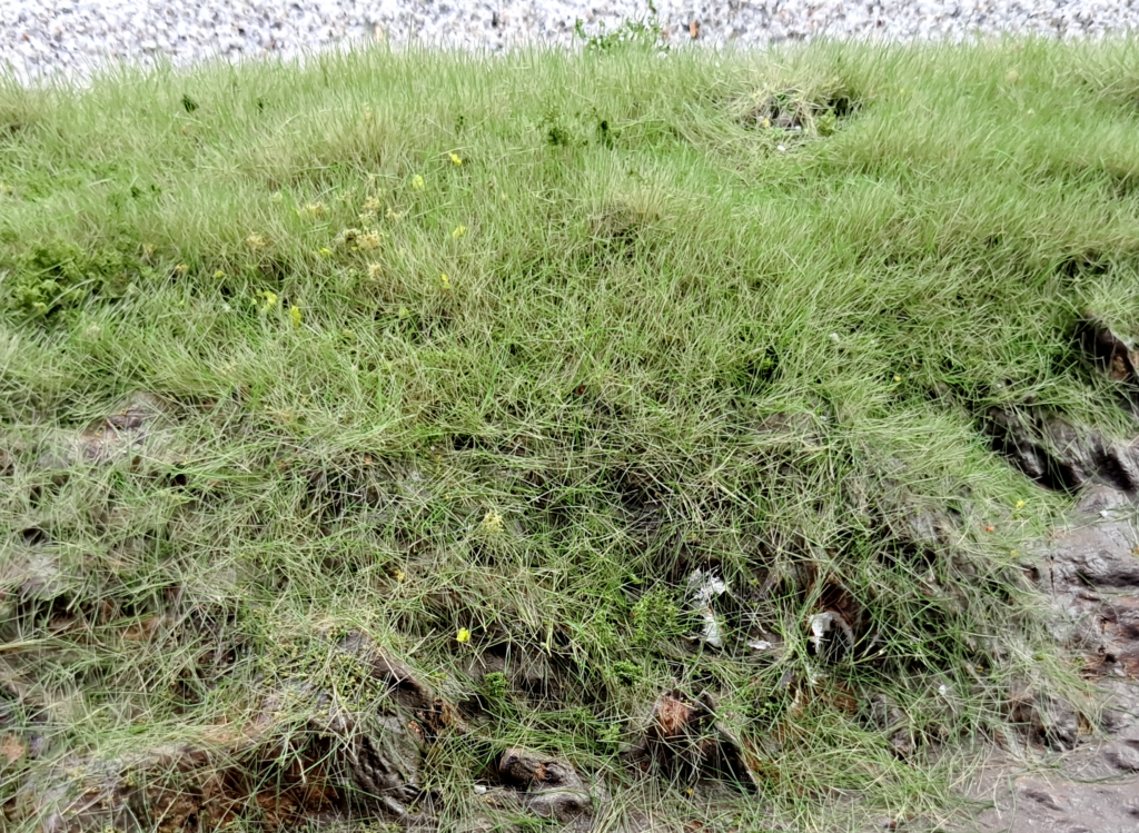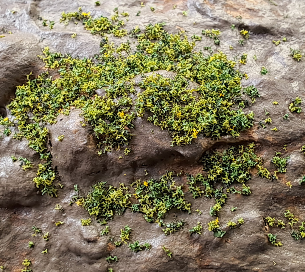 To my surprise, once the grass was in place, it looked much more like real field grass than my previous efforts. The reason was obvious: varying the surface texture made the grass undulate, creating the impression of different growth rates. This was a revelation to me. Now I can plan different variations in my field grasses during the Sculptamold stage. If you don’t want to add a top texture, you can easily carve the variation directly into a foam base.