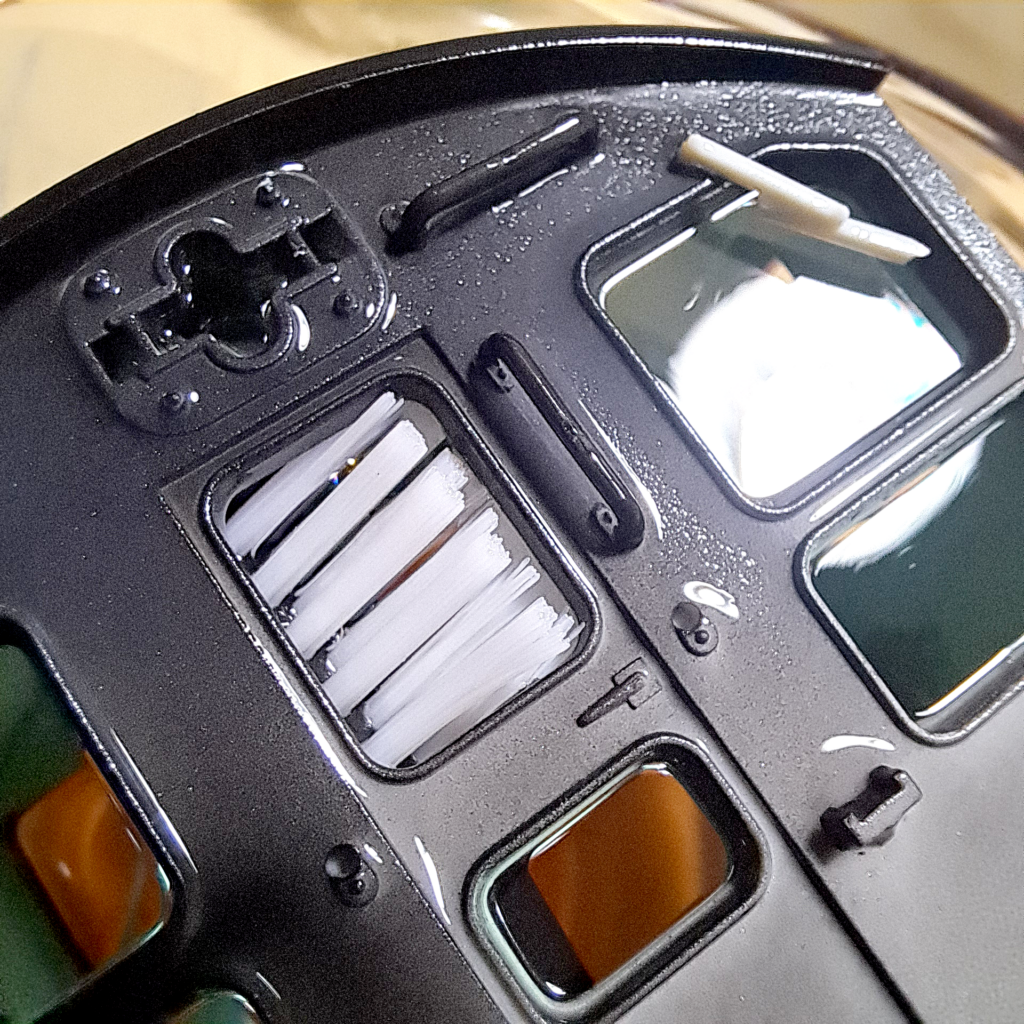 I took the stripped cab and dropped it into a measuring pitcher filled with Super Clean. Within minutes the engine’s pad-printed number dissolved and I used a toothbrush to scrub it clean. Likewise, the decals were easy to remove. Silver enamel paint on the back side of the cab was more stubborn, but after soaking for over 24-hours, it is dissolving very nicely. Super Clean does not affect the plastic, so I plan to keep soaking the part until the enamel is completely gone. I found that scrubbing the paint had no effect on removing it—one has to be patient and let the solution dissolve it over time.